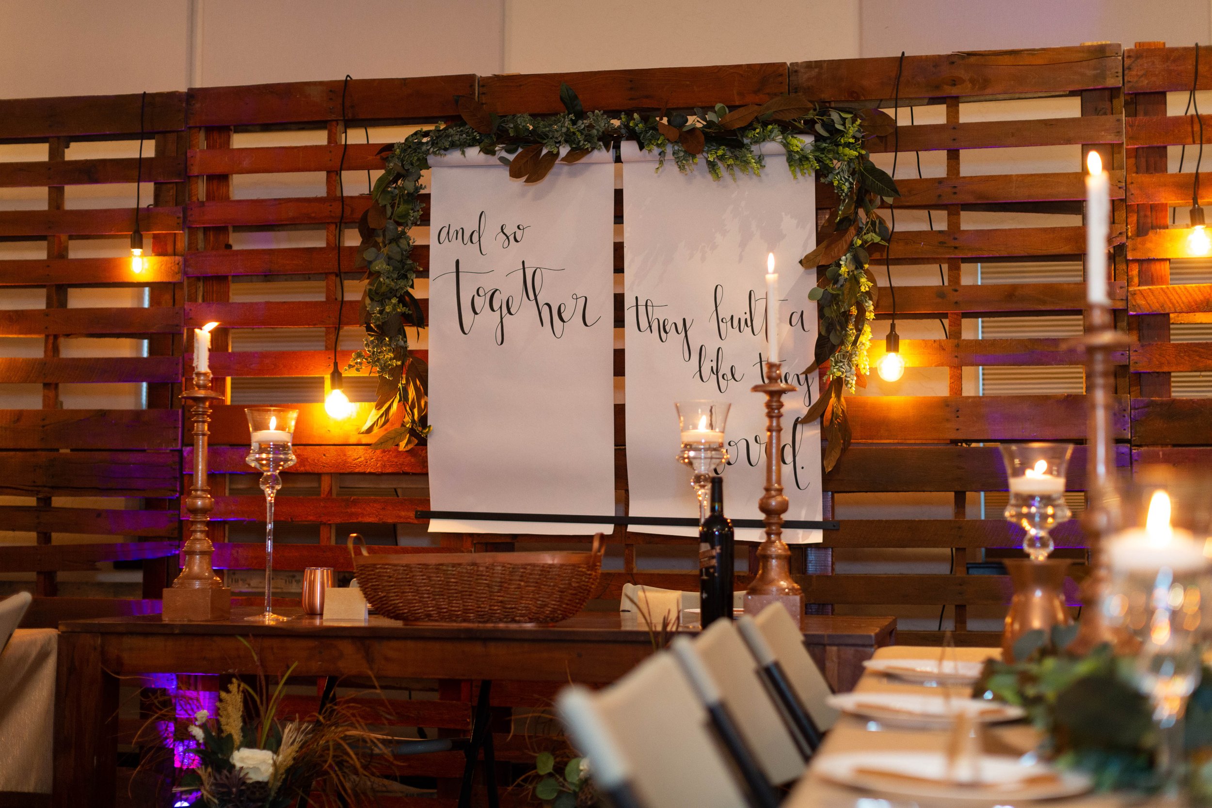 Vases, candles, and sashes provided by Hive & Co