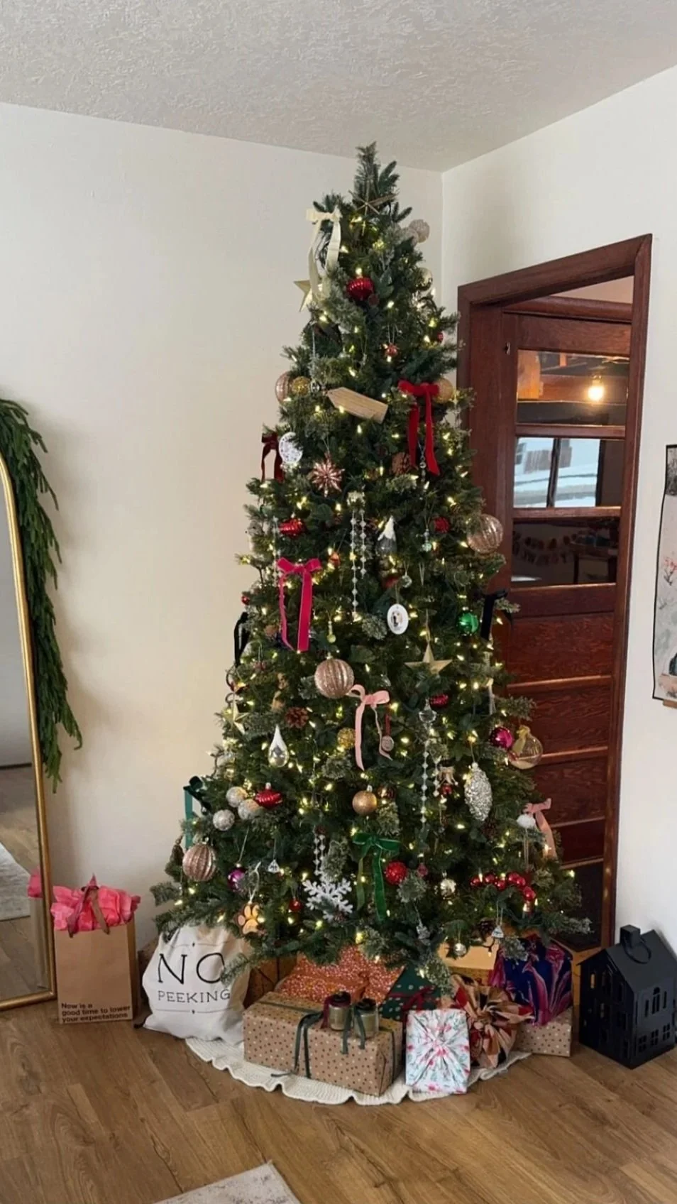 Christmas trees decorated by Hive & Co with pre-existing ornaments and embellishments